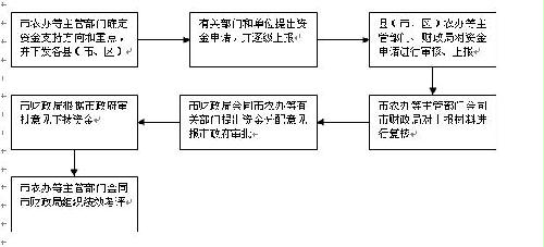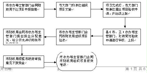 注:第一格方框后增加两方框:①县(市、区)农办等主管部门会同财政局对申请立项资料进行评审,并汇总上报市项目主管部门和财政局;②市农办等主管部门和财政局对上报材料进行审核,并联合下达立项文件。